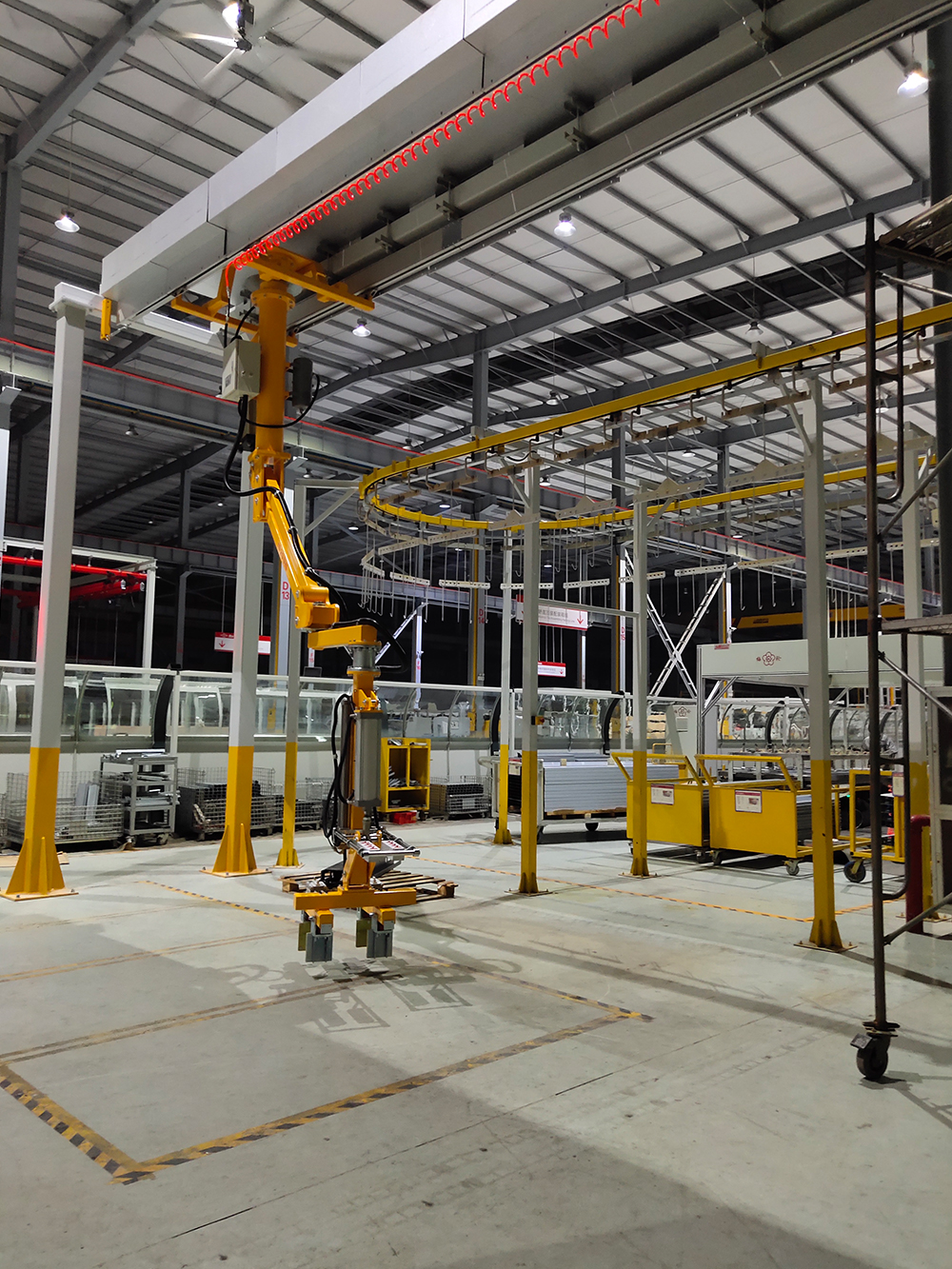 軌道懸掛型適用于大的空間需求,軌道可以根據(jù)現(xiàn)場(chǎng)情況借助于現(xiàn)場(chǎng)廠房鋼結(jié)構(gòu),也可以根據(jù)搬運(yùn)空間需求重新定制鋼結(jié)構(gòu)懸掛軌道,也可以根據(jù)現(xiàn)場(chǎng)條件要求及搬運(yùn)負(fù)載要求更換形式:KBK鋼軌、鋁合金軌道等。可適用于不同的現(xiàn)場(chǎng)要求。機(jī)械手的相關(guān)參數(shù)和氣控系統(tǒng)根據(jù)現(xiàn)場(chǎng)搬運(yùn)需求做調(diào)整更改,以便達(dá)到使用最優(yōu)化。